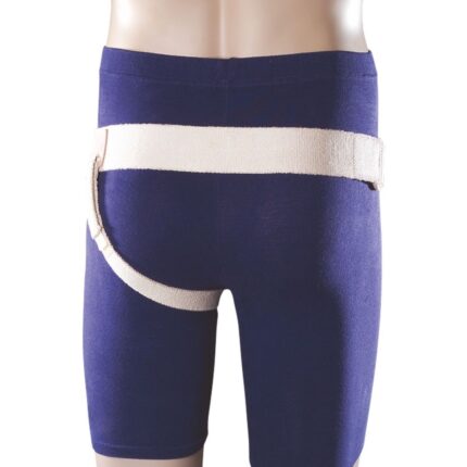 A Funda Inguinal Dupla com Almofada Amovível auxilia os utilizadores com hérnias inguinais bilaterais, diminuindo a hérnia e a consequente dor.