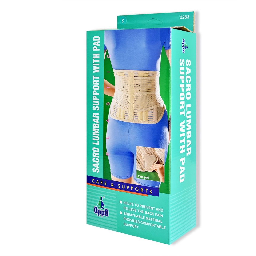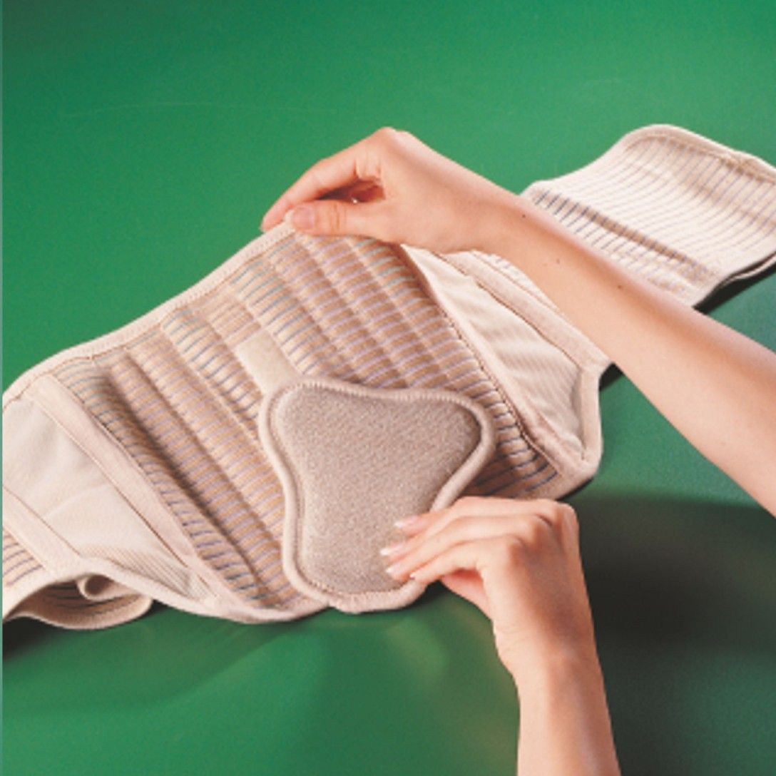 A Cinta Sacrolombar c/Almofada Amovível da Oppo auxilia nos casos de dor lombar, espondilolistese, hérnia discal lombar e alterações posturais devido a dor ou fraqueza dos músculos abdominais.