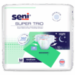 Seni Super Trio pode ser usado na incontinência urinária e fecal. Devido à grande capacidade de absorção é recomendado para o uso noturno.
