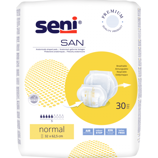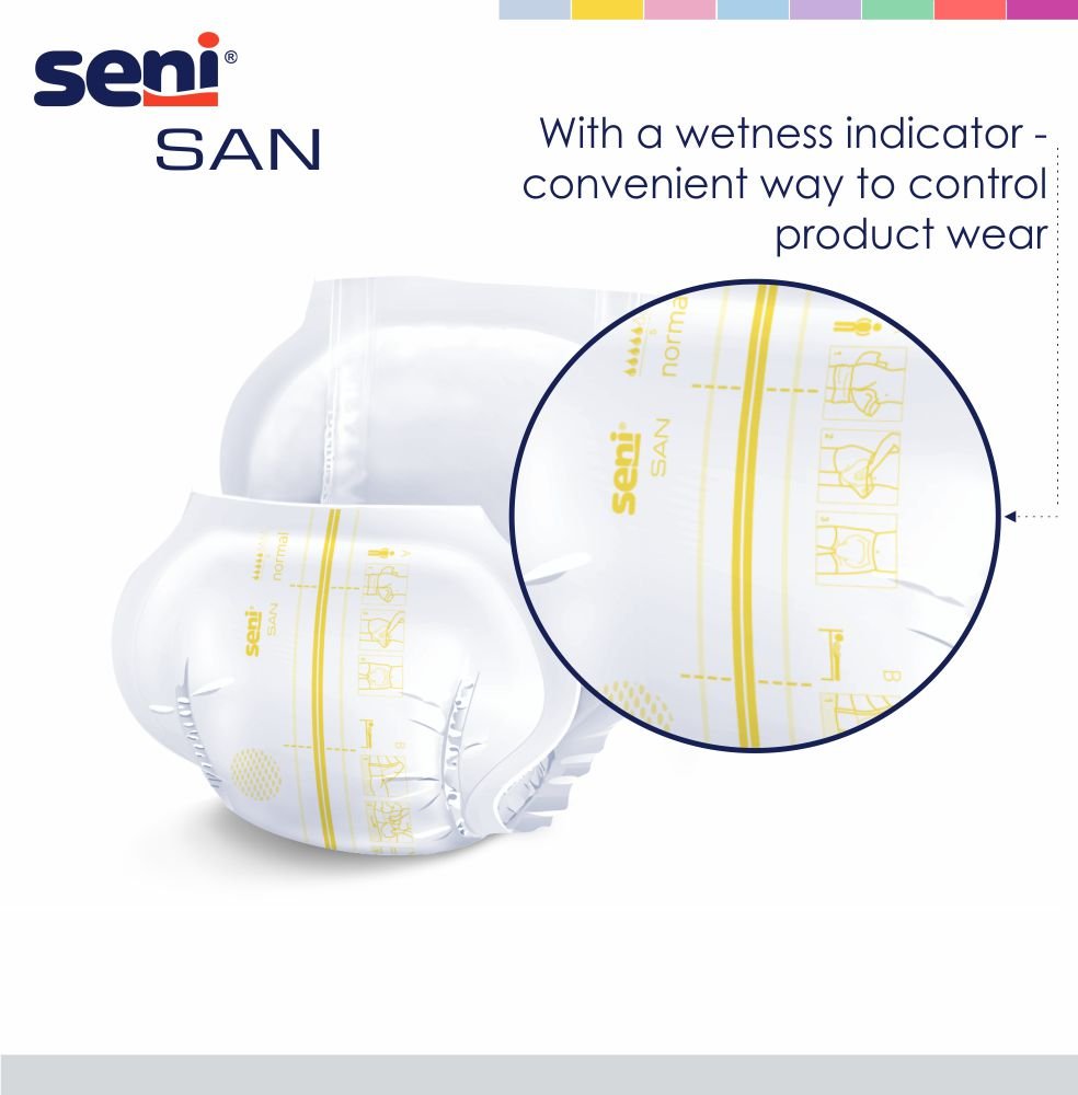 Pensos de SENI San Normal pode ser usado na incontinência urinária e intestinal.